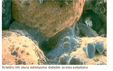 Vairums mēslošanas līdzekļu uzglabāšanas laikā mēdz sakust vai salipt. Tā notiek, jo starp granulām izveidojas spēcīgi kristāla tilti un tās sāk savstarpēji pievilkties. Tas var būt saistīts ar vairākiem procesiem, bet svarīgākie no tiem ir: