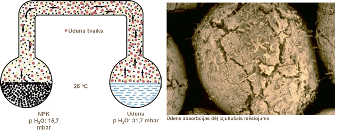 Ievērojama ūdens daudzuma uzņemšana mēslošanas produktos rada nevēlamas sekas: