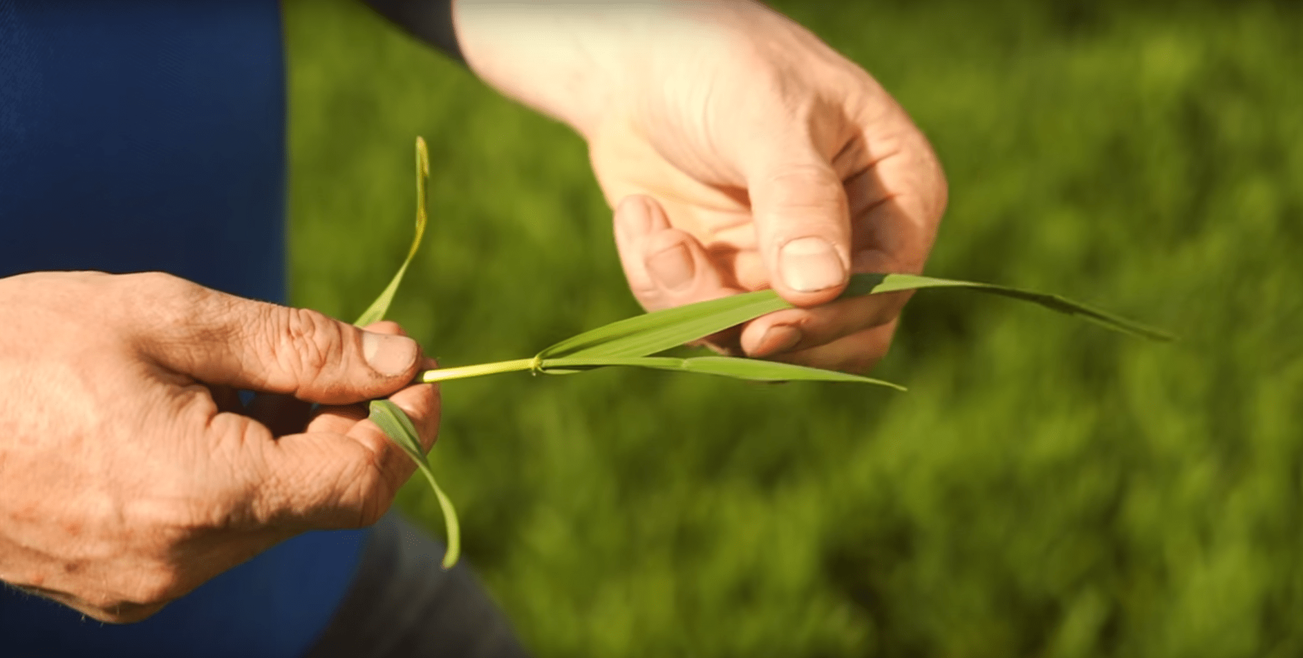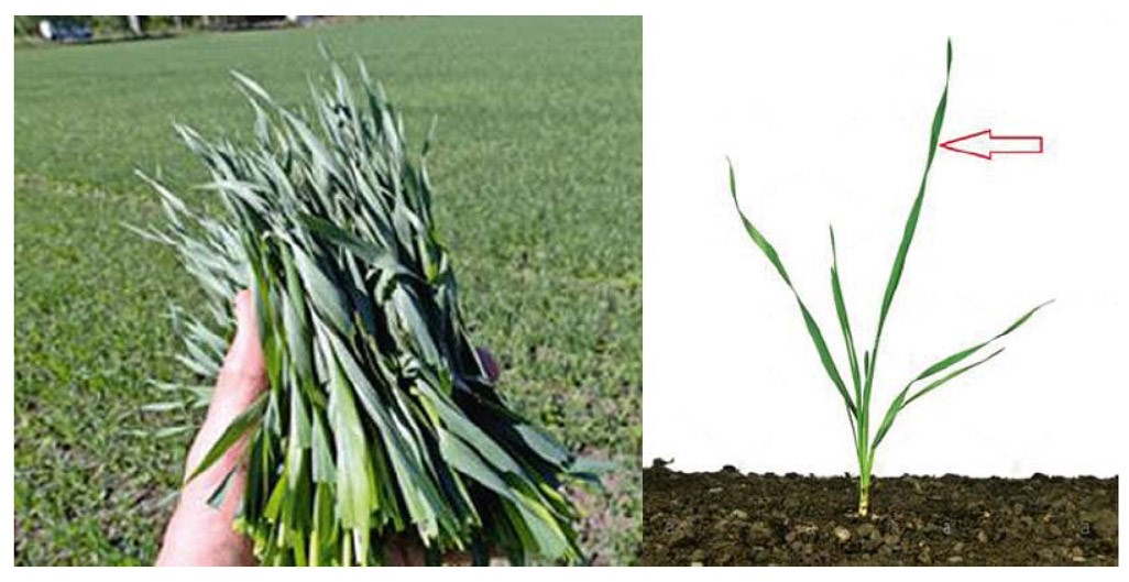 - No auga ievāciet (jaunāko) pilnībā attīstīto lapu (neievāciet graudaugu karoglapu).