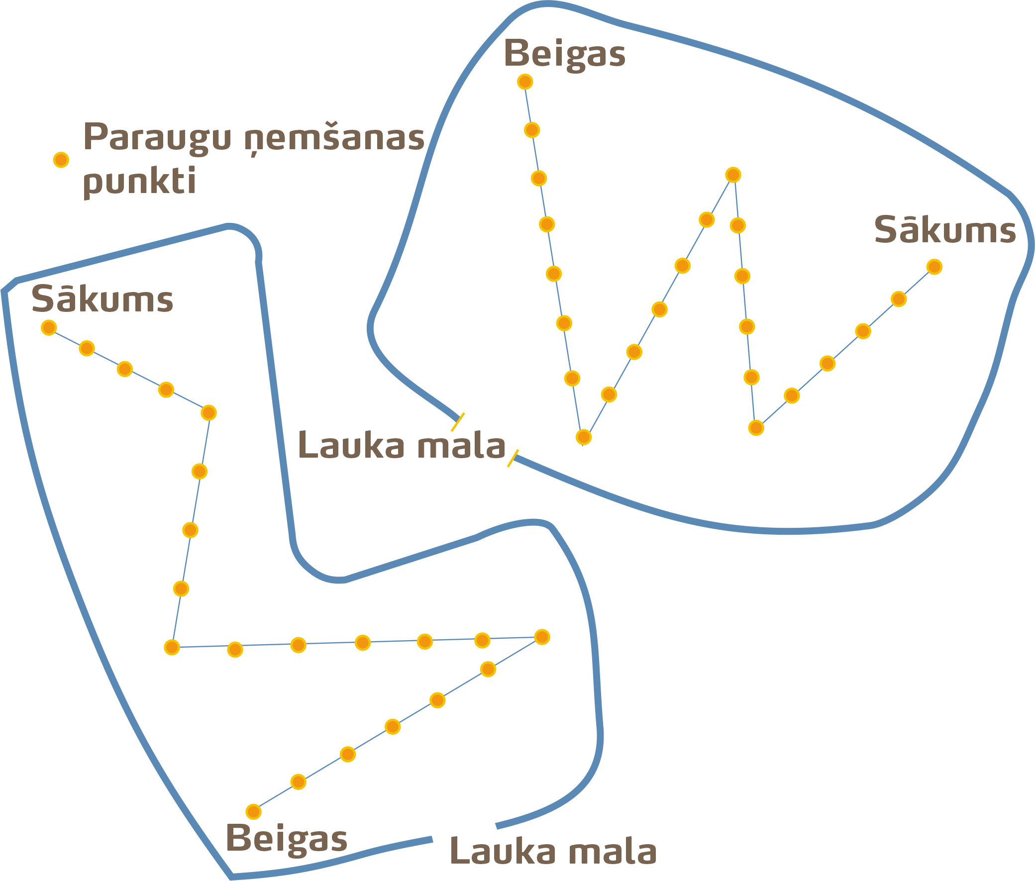 Pirms lapu ievākšanas ieplānojiet aptuveni 20 lapu paraugu ievākšanas punktus uz lauka, pie katra punkta ievāciet lapu paraugus no 4-5 augiem. Lapas ievāciet no dažādiem lauka apvidiem, lai iegūtu pilnīgu priekšstatu par augu barības elementu nodrošinājumu augos.
